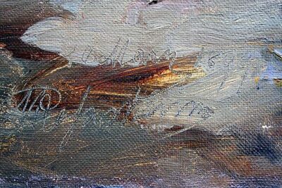 Admire the beautiful vista of "Clouds above Sea Coast" (1989) by Viktor Leškin. This magnificent oil on canvas, measuring 50 x 80, captures the ethereal beauty of nature's elements. Signed on the lower right, this piece exemplifies Leškin's mastery of color and form. The gentle interplay of clouds and sea creates a soothing atmosphere that will enhance any room's decor. This artwork is a precious addition to any art collection, embodying the timeless beauty of the natural world.