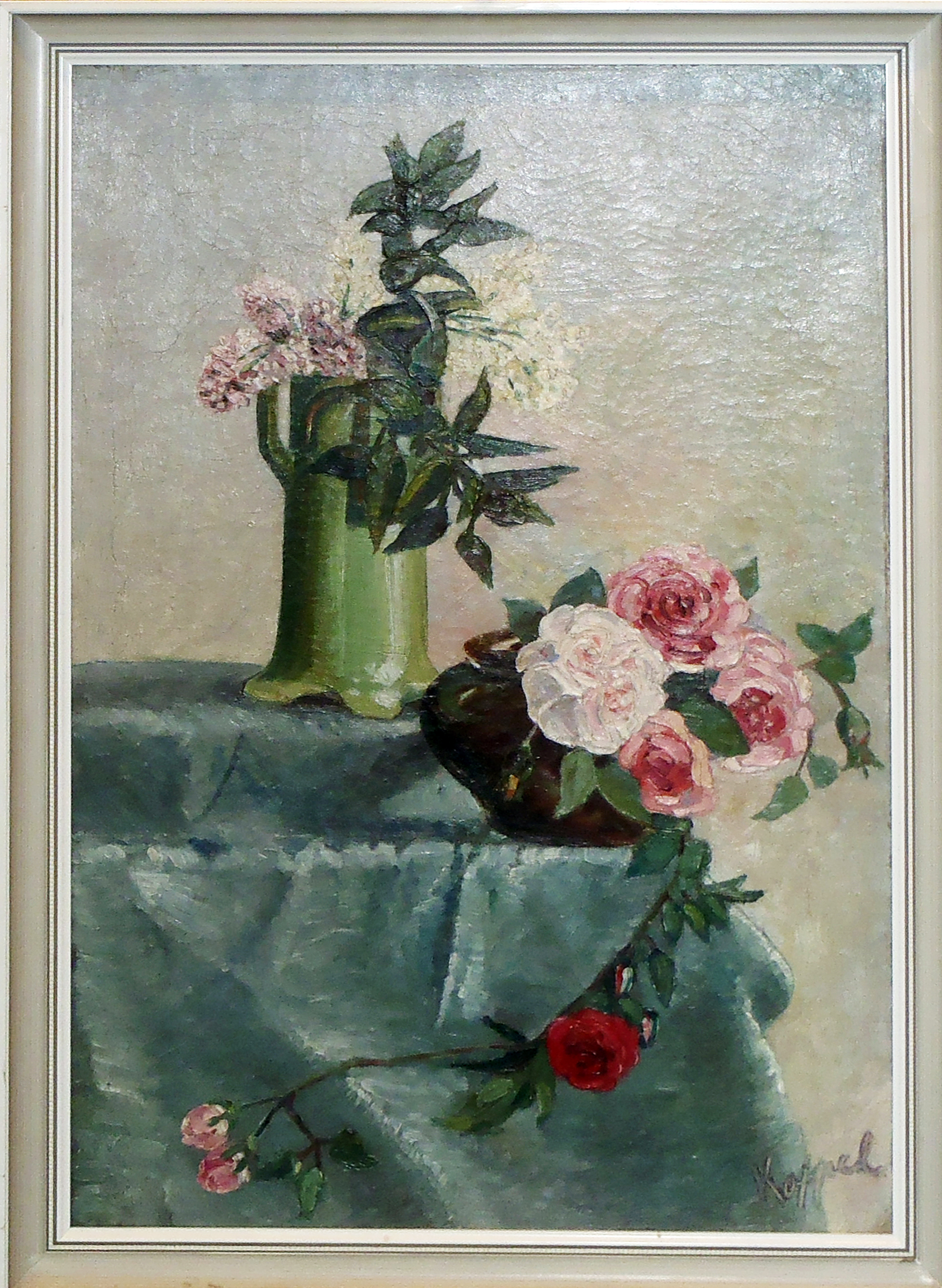 See võluv teos “Lilled rohekal taustal” 1930ndatest on tuntud kunstniku Fredrick Koppeli suurepärane õlimaal lõuendil.